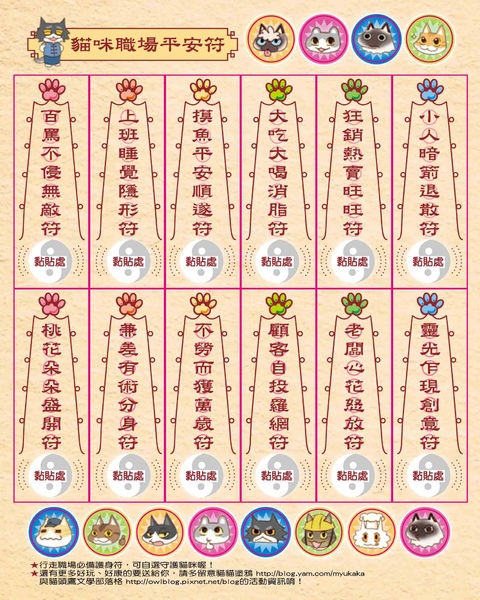 活動獎勵:最具創意前12名將可免費獲得貓咪職場平安符網友KUSO版10